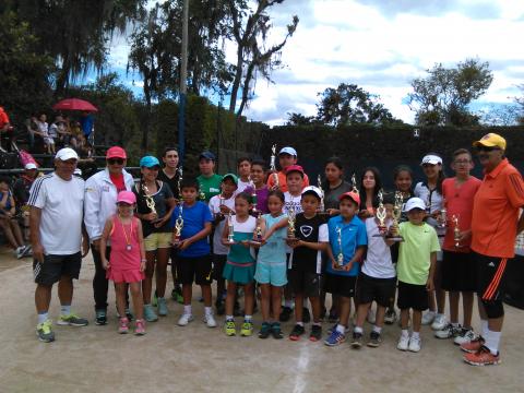 El telón del certamen tenístico cayó ayer al medio día con el acto de premiación. Los ganadores en compañía de sus padres y familiares recibieron de la organización en cabeza de la Gerente de Indeportes Cauca, Ana Bolena García Ricardo, trofeos y copas que los acreditan como los campeones de cada categoría.