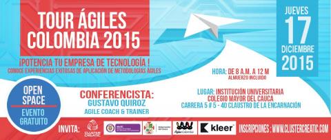 Popayán (Cauca) La Gobernación del Cauca y el Cluster CreaTIC invitan al Tour Ágiles Colombia 2015 Open Space, un encuentro para conocer experiencias sobre metodologías ágiles aplicadas a emprendimientos y sector gubernamental. Este espacio que es apoyado